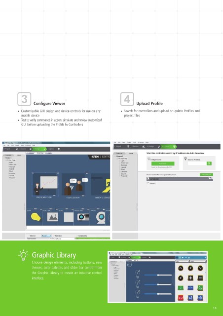 • Customizable GUI design and device controls for use on any • Search for controllers and upload or update Profiles and