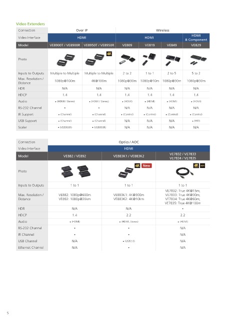 Distance VE892: 1080p@20km VE883K2: 4K@10km VE7834: True 4K@60m;