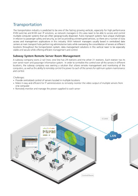 centers at main transport hubs performing administrative tasks while overseeing the consolidation of servers at different The ATEN solution can be accessed and managed via CC2000