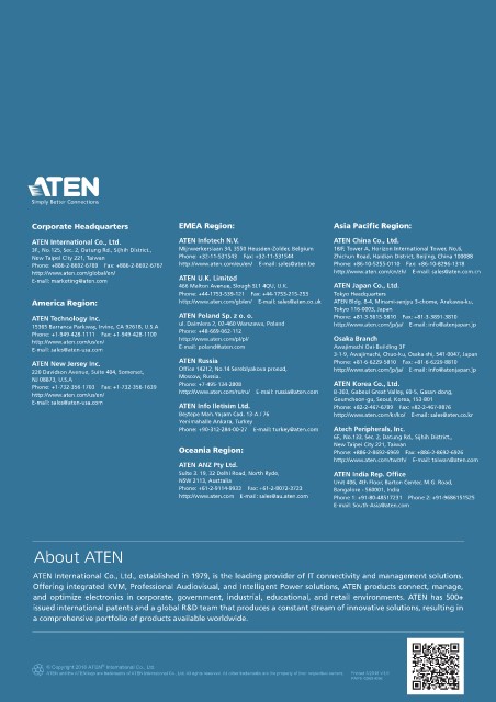 Phone: +886-2-8692-6789 Fax: +886-2-8692-6767 http://www.aten.com/eu/en/ E-mail: sales@aten.be Phone: +86-10-5255-0110 Fax: +86-10-8296-1318