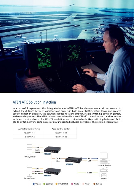 and secondary servers. The ATEN solution was to install various KE9950 transmitter and receiver models