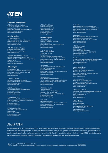 tion, broadcasting and media, and transportation environments. ATEN has 630+ issued international patents and a global R&D team that produces