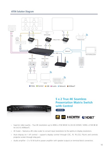 Solution ② ATEN audio system provides the microphone and source audio and shares it with the • Superior video quality – True 4K resolutions up to 4096 x 2160 @ 60 Hz (4:4:4) (HDMI) / 4096 x 2160 @ 60