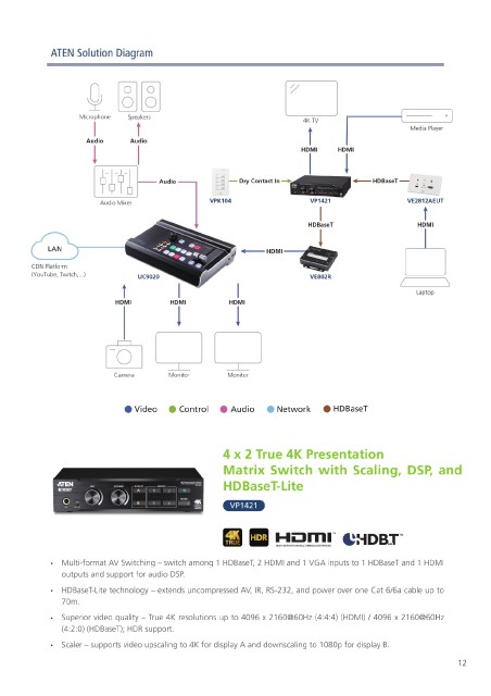 presentation content and the in-class camera, and combines these two input sources into a (4:2:0) (HDBaseT); HDR support.