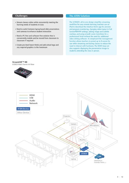 • Stream classes online while concurrently meeting the The UC9020’s all-in-one design simplifies streaming