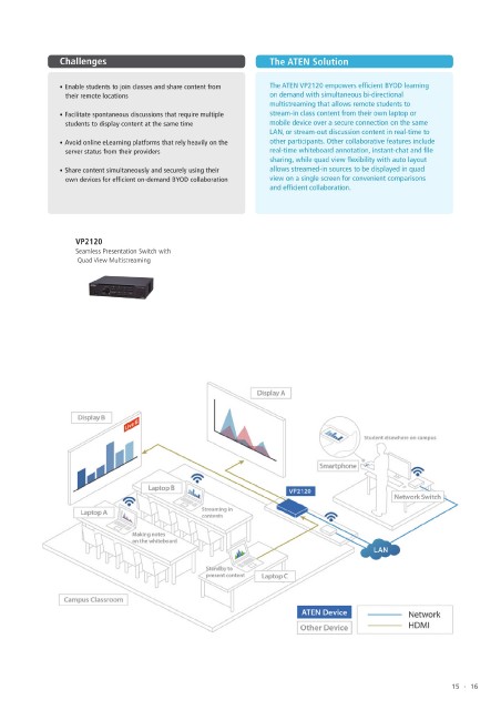 • Enable students to join classes and share content from The ATEN VP2120 empowers efficient BYOD learning