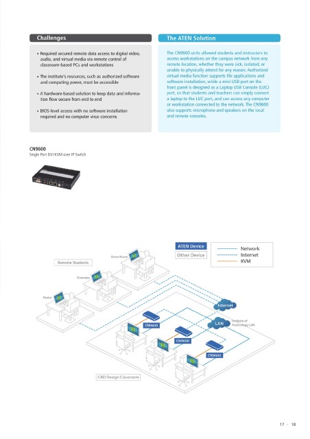 • Required secured remote data access to digital video, The CN9600 units allowed students and instructors to
